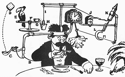 In his comics, a simple task like “wipe your mouth” required dozens of elaborate steps: pulleys, birds, balloons, firecrackers - all timed perfectly just to get a napkin to move.